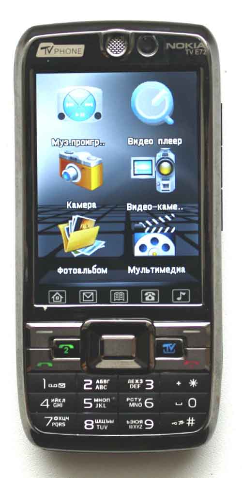 Основная спецификация китайского телефона E72: - 2 активные SIM-карты с цветным ТВ - Форм-фактор: моноблок - Корпус: пластик/металл - Доступные цвета: черный - Габариты: 115х49х15 мм - Емкость батареи: 2200мА - Время работы в режиме ожидания: 220 - 260 ч. - Время работы в режиме разговора: 2 – 3 ч. - Сеть: GSM 850/900/1800/1900 Мгц Характеристики E72: - Огромный сенсорный экран 3,0”, 260 тыс. цв. (240х320) - Одновременная работа 2 SIM-карт - Цветной ТВ-тюнер (SECAM, спец регион – Россия, все каналы показывает в цвете, автопоиск, регулировка яркости, полноэкранный режим, видео захват) - Датчик акселерометра (наклонить телефон, чтобы «заглушить» звонок) - Функция «magic voice» (можно менять свой голос во время разговора на детский, женский, мужской, томный, хриплый) - Функция "shake" (потрясти телефон, чтобы сменить картинку, музыкальный трек, видео) - Датчик ориентации (смена положения экрана) - 2 фото/видео/web-камеры 1,3 Mpix со вспышкой (максимальное разрешение 1280х960) - Bluetooth 2.0 - MP3/MP4-плеер - FM-радио (может играть без наушников) - Поддержка карт microSD (до 8Gb) - Универсальный выход под наушники (3,5мм) - Универсальный выход под зарядное устройство Nokia Особенности Nokia TV E72: - Память до 500 контактов; 200 SMS; 100 MMS - Стереодинамики, 64-тональная полифония, mp3/3gp на звонок - WAP, GPRS, MMS - Подключение к компьютеру через USB - Календарь, задачи, будильник, мировое время, секундомер - Фотография/Мелодия/Видео на контакт - Включение/выключение телефона по расписанию - 5 будильников, работает при выключенном телефоне, различные режимы от понедельника до воскресенья - 2 встроенные игры - Диктофон, калькулятор, записи, конвертер Русификация E72: - Российский SECAM (цветное телевидение) - Отличное русское меню - Русский ввод SMS (побуквенный и виртуальная клавиатура) - Возможность поставить русский ввод по умолчанию, убрав все лишние языки Комплектация E72: - Телефон - USB-кабель - Стерео-гарнитура - АКБ - Зарядное устройство Цена 3000 руб |